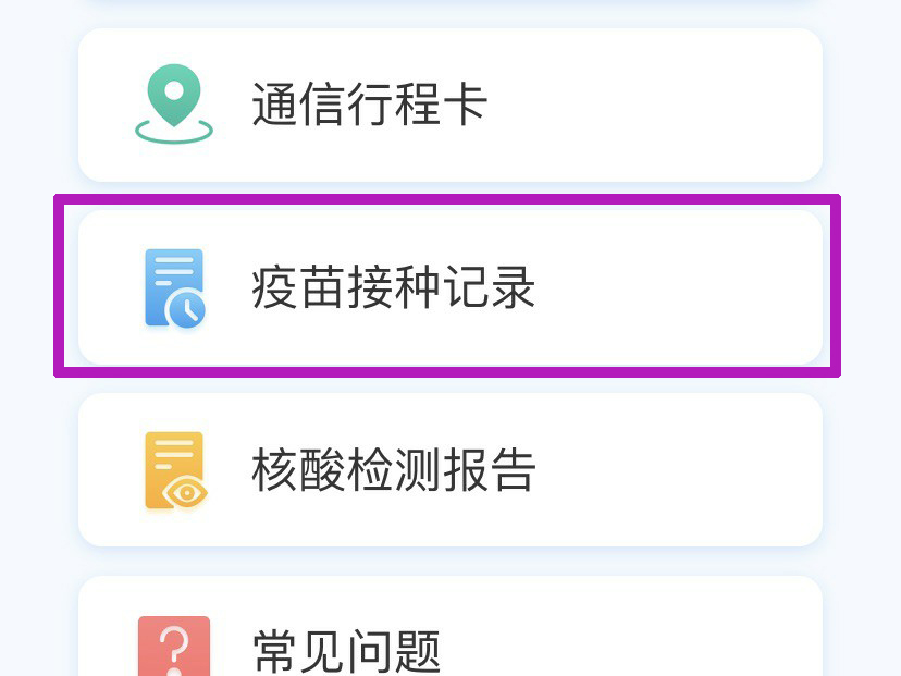 2、在健康码页面中,找到疫苗接种记录选项,然后点击进入。