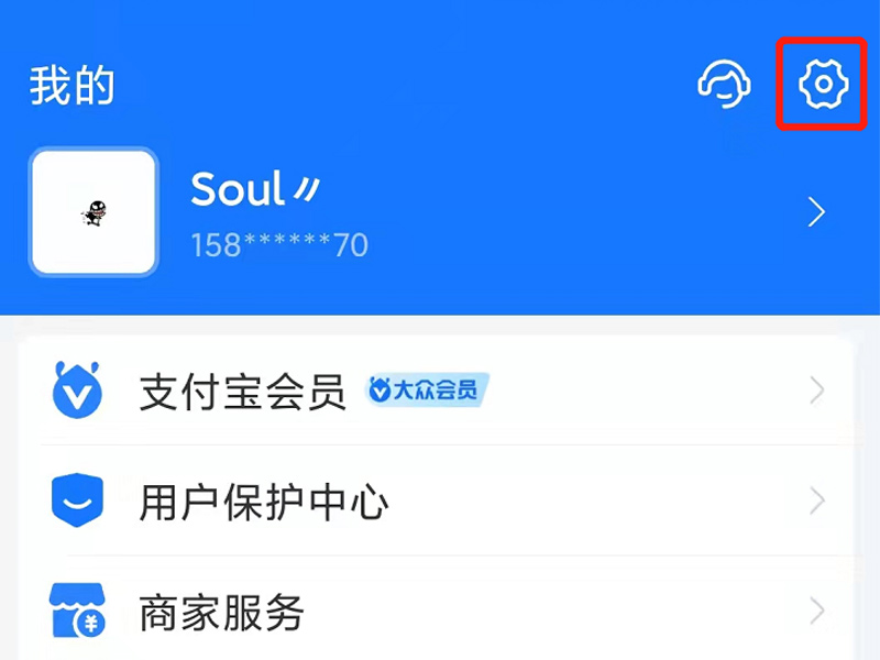 1、打开支付宝app,先点击右下方的“我的”,再点击右上角的齿轮进入设置界面。