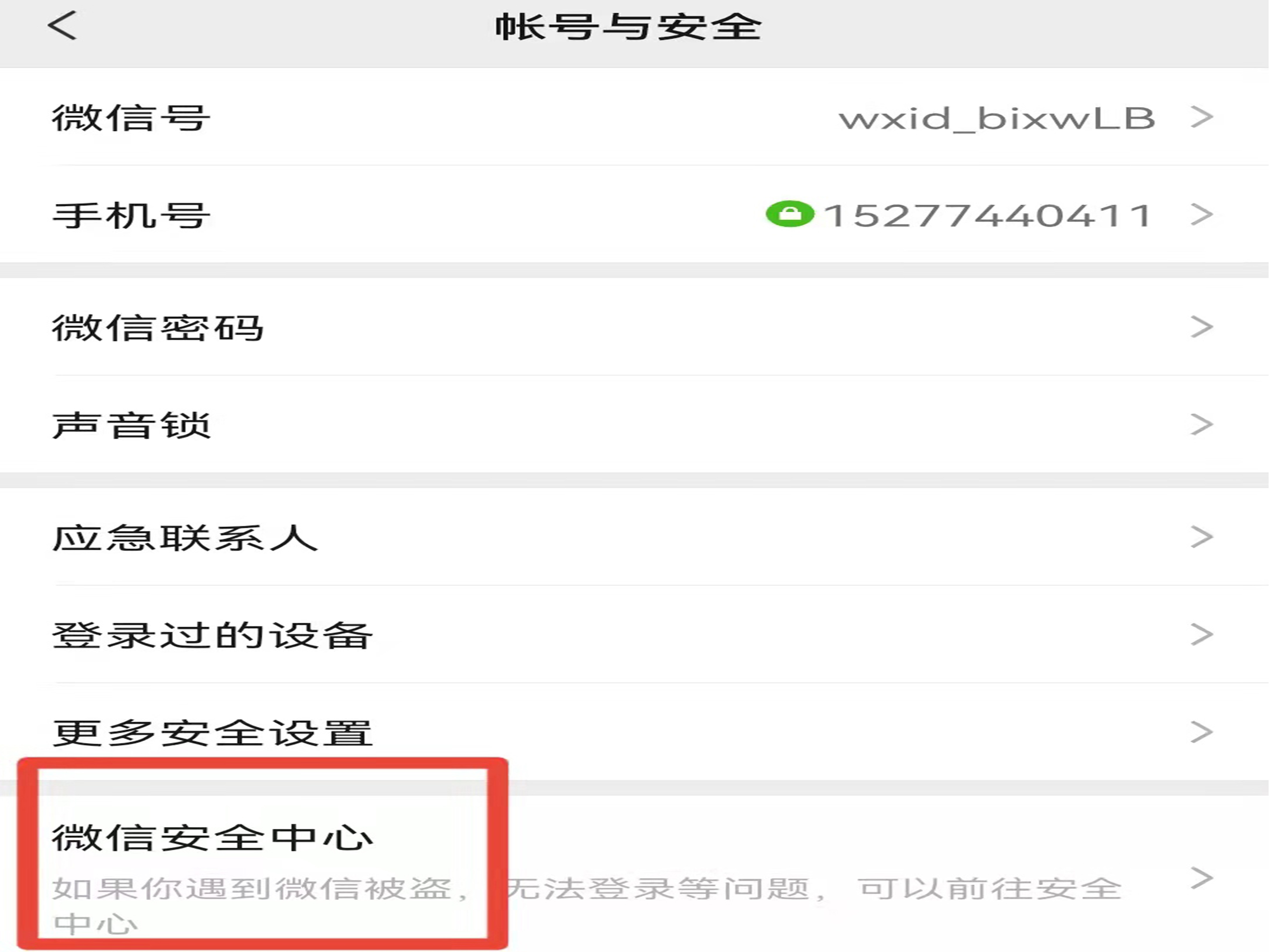 2、选择“账号与安全”,点击“微信安全中心”,进入其界面。