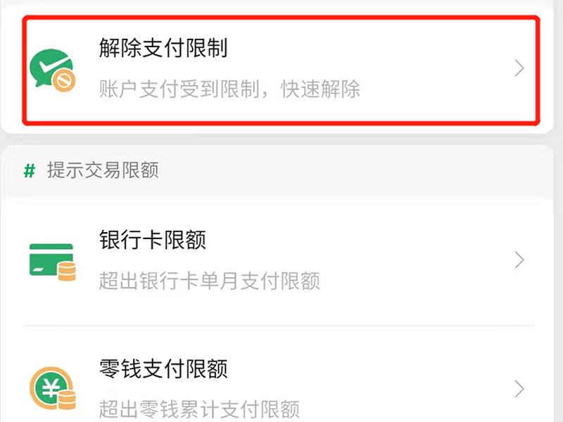 微信解除限制的具体步骤如下:1、打开微信app,点击右下方的“我”,然后点击支付。2、进入支付界面后,点击钱包,再点击下方的帮助中心。3、进入帮助中心界面后,点击支付不了。4、进入支付不了界面后,再点击解除支付限制即可。