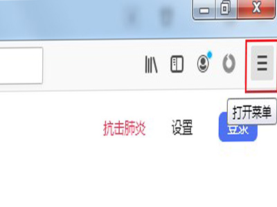 1、点击火狐浏览器首页右上角三条横线“打开菜单”按钮。