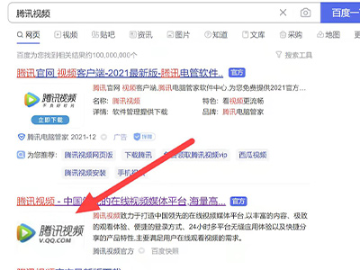 1、 打开电脑浏览器,搜索腾讯视频网站,点击进入。