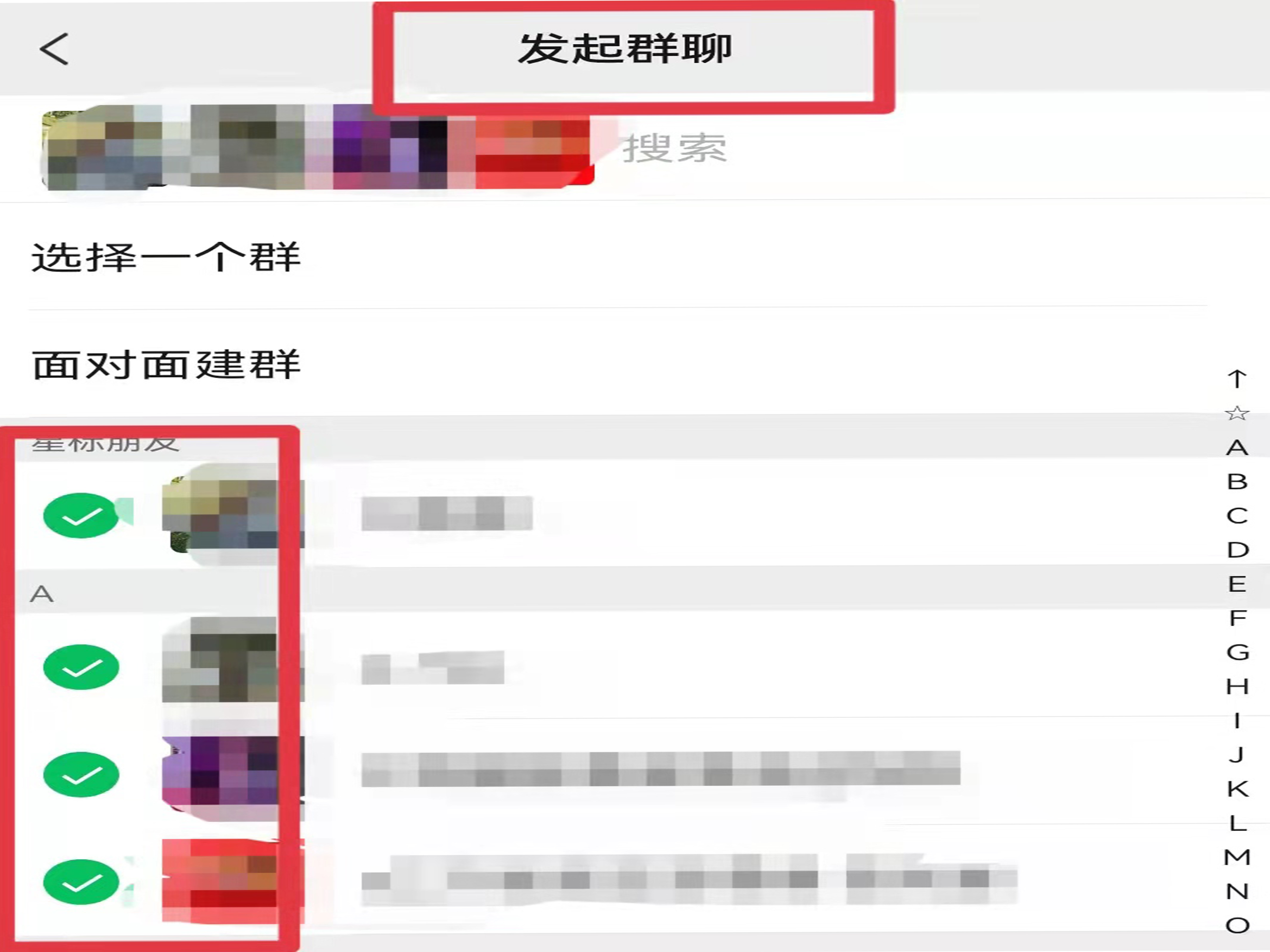 2、选择“发起群聊”,勾选想要添加到群里的好友。
