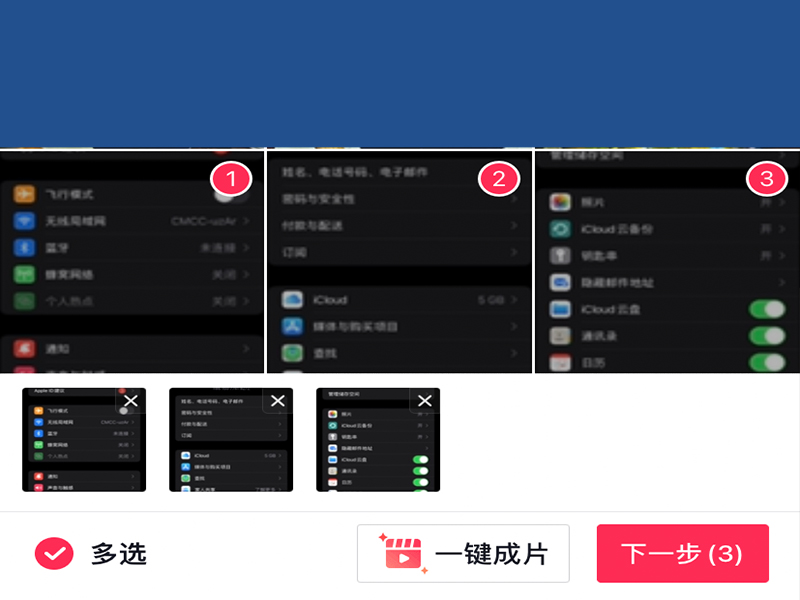 3、进入照片选择界面后,选择好要发布的照片,再点击下一步。