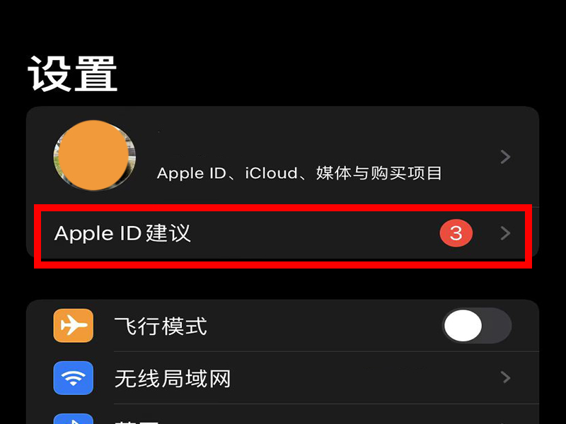 1、打开设置,点击界面上方的个人头像。