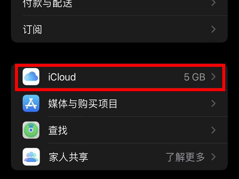 2、进入“Apple ID”界面后,点击“iCloud”。