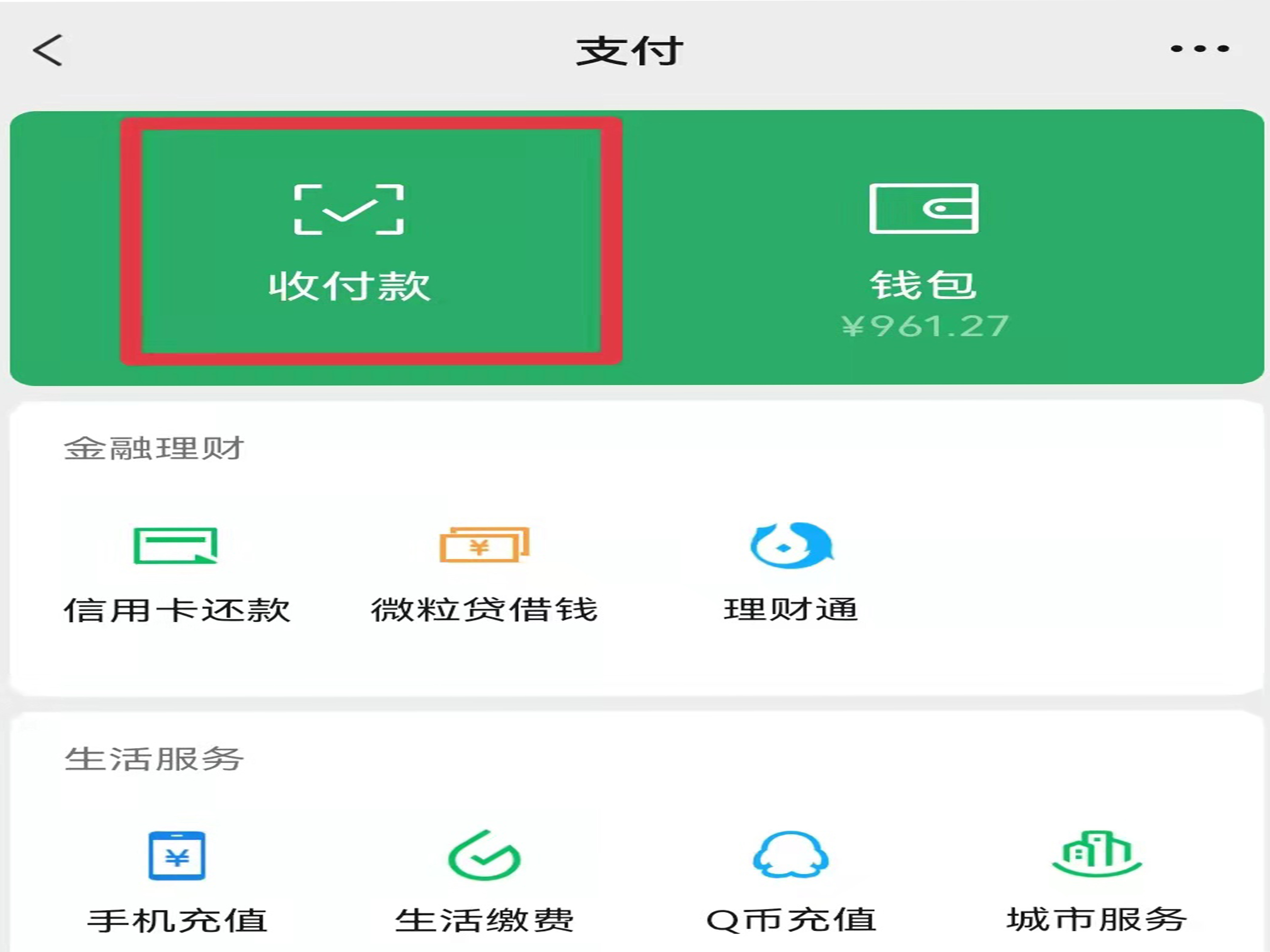 2、在我的页面点击“支付”,选择“收付款”。