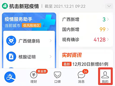 1、打开手机支付宝app,进入我的页面。