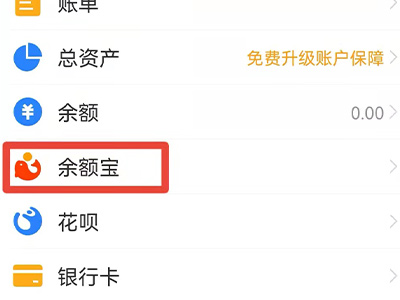 2、点击“余额宝”,进入页面。