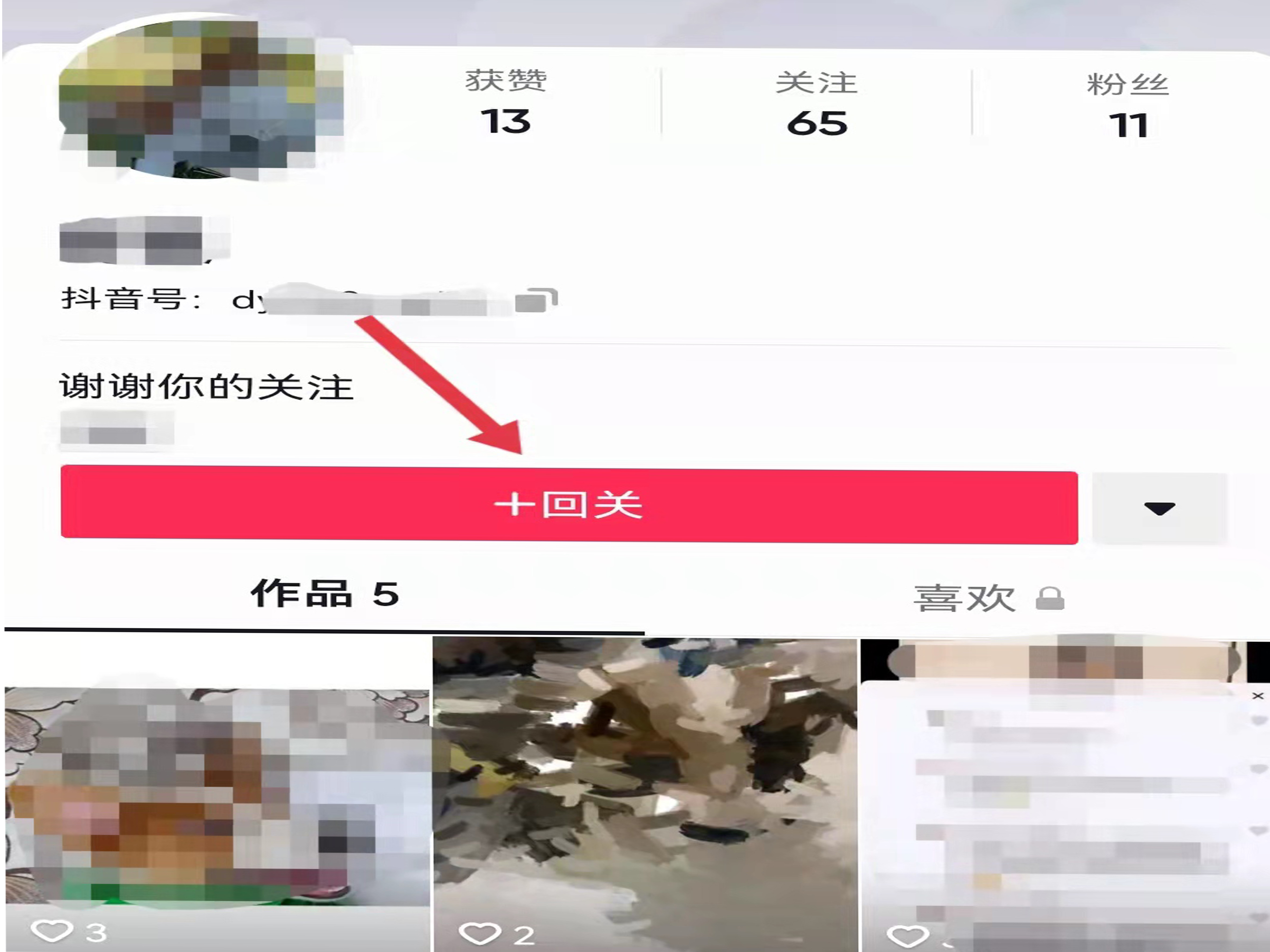 3、进入对方抖音号主页,点击“+回关”,即可重新关注对方。