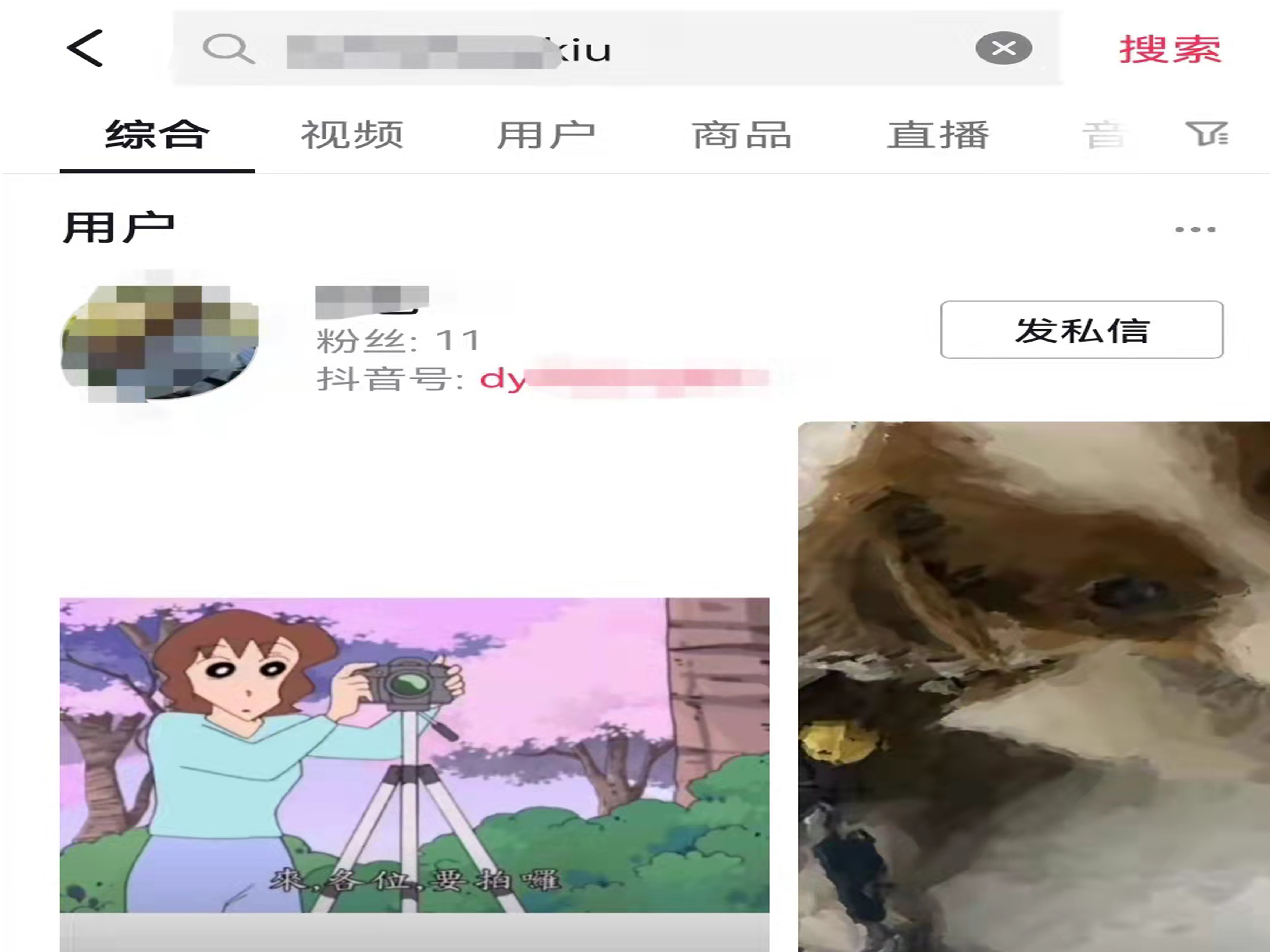2、在搜索栏输入对方抖音账号,点击“搜索”。