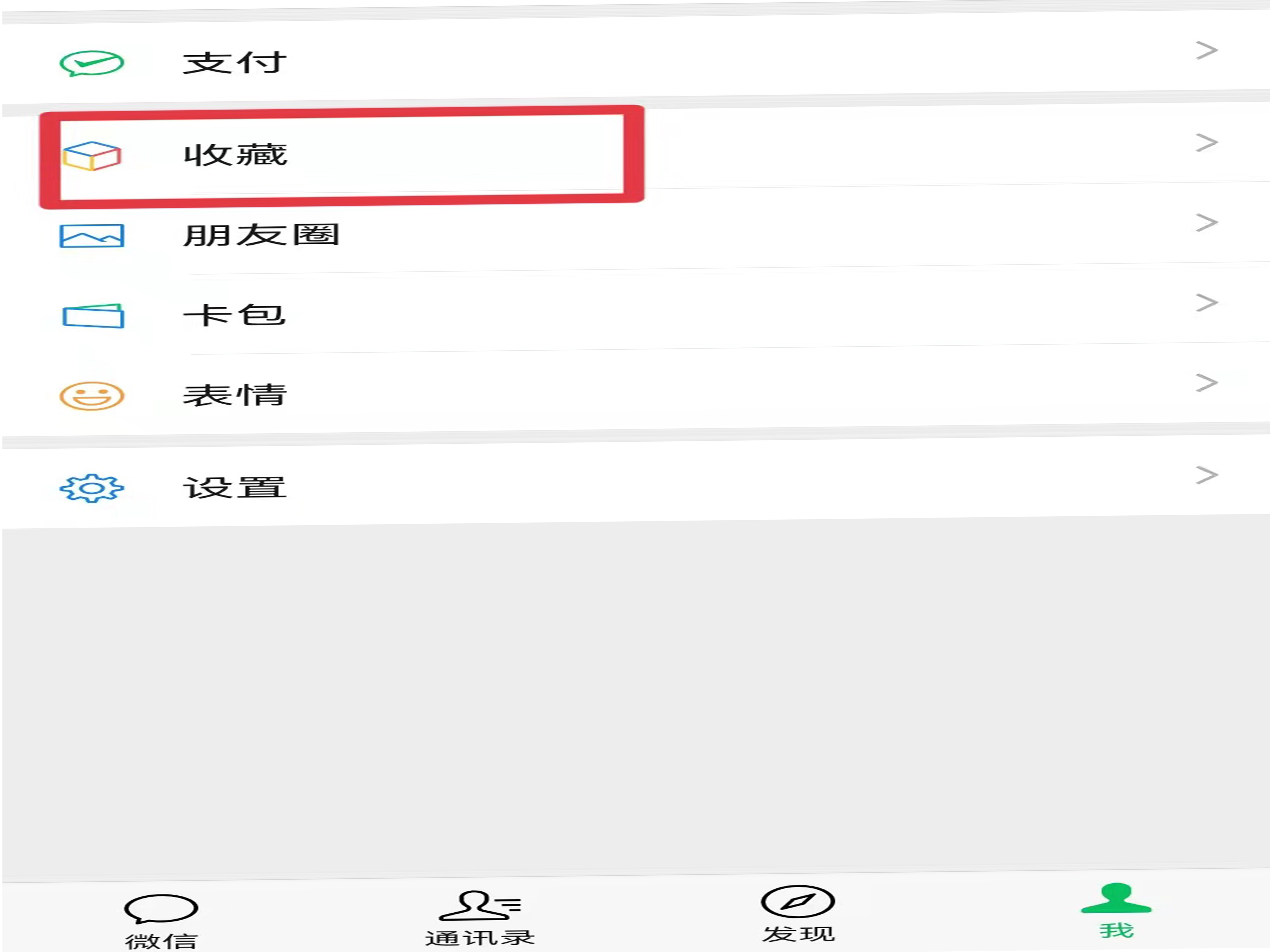 1、打开微信,切换到“我”的页面,点击“收藏”。