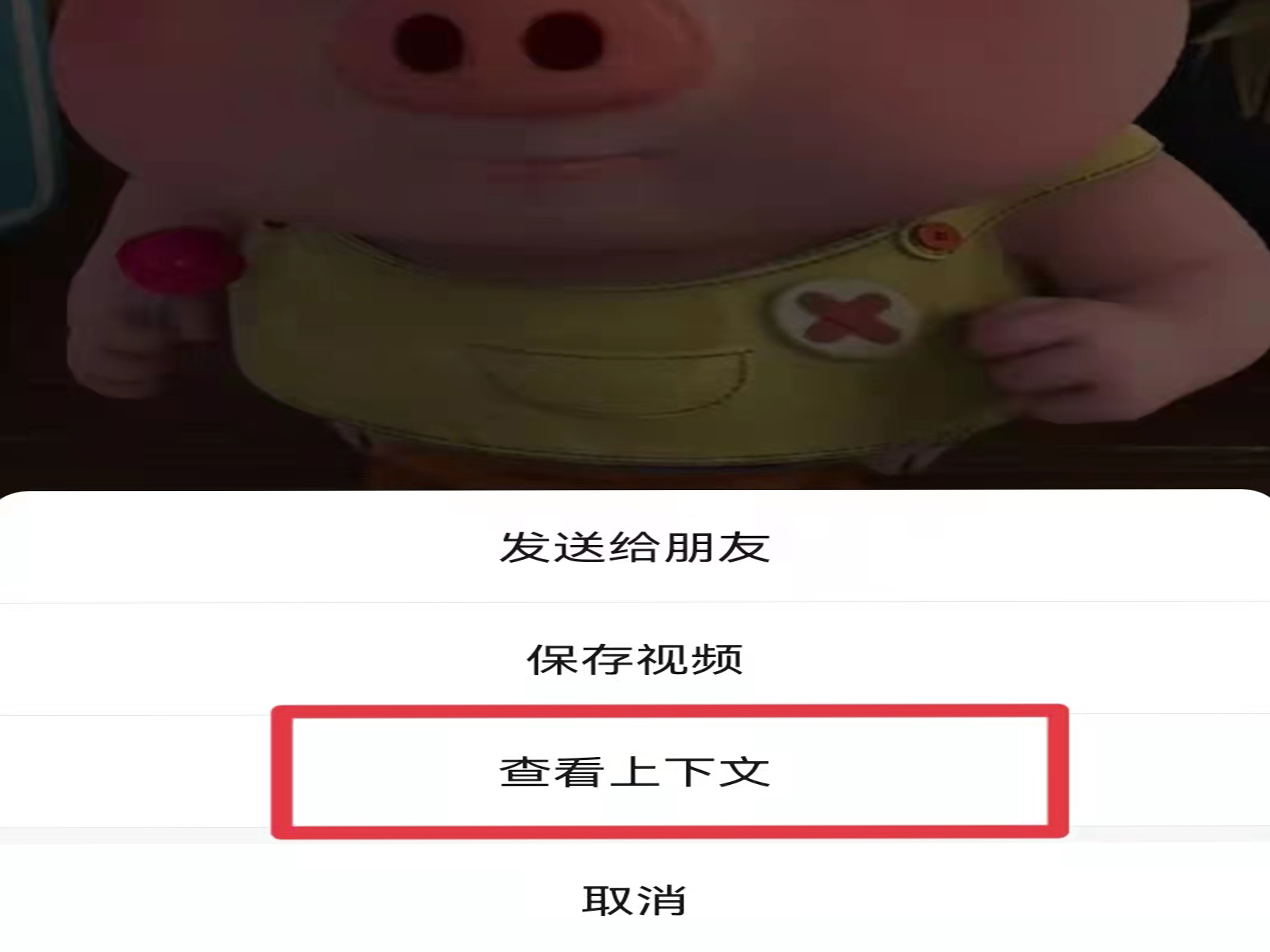 3、选中视频长按,点击“查看上下文”。