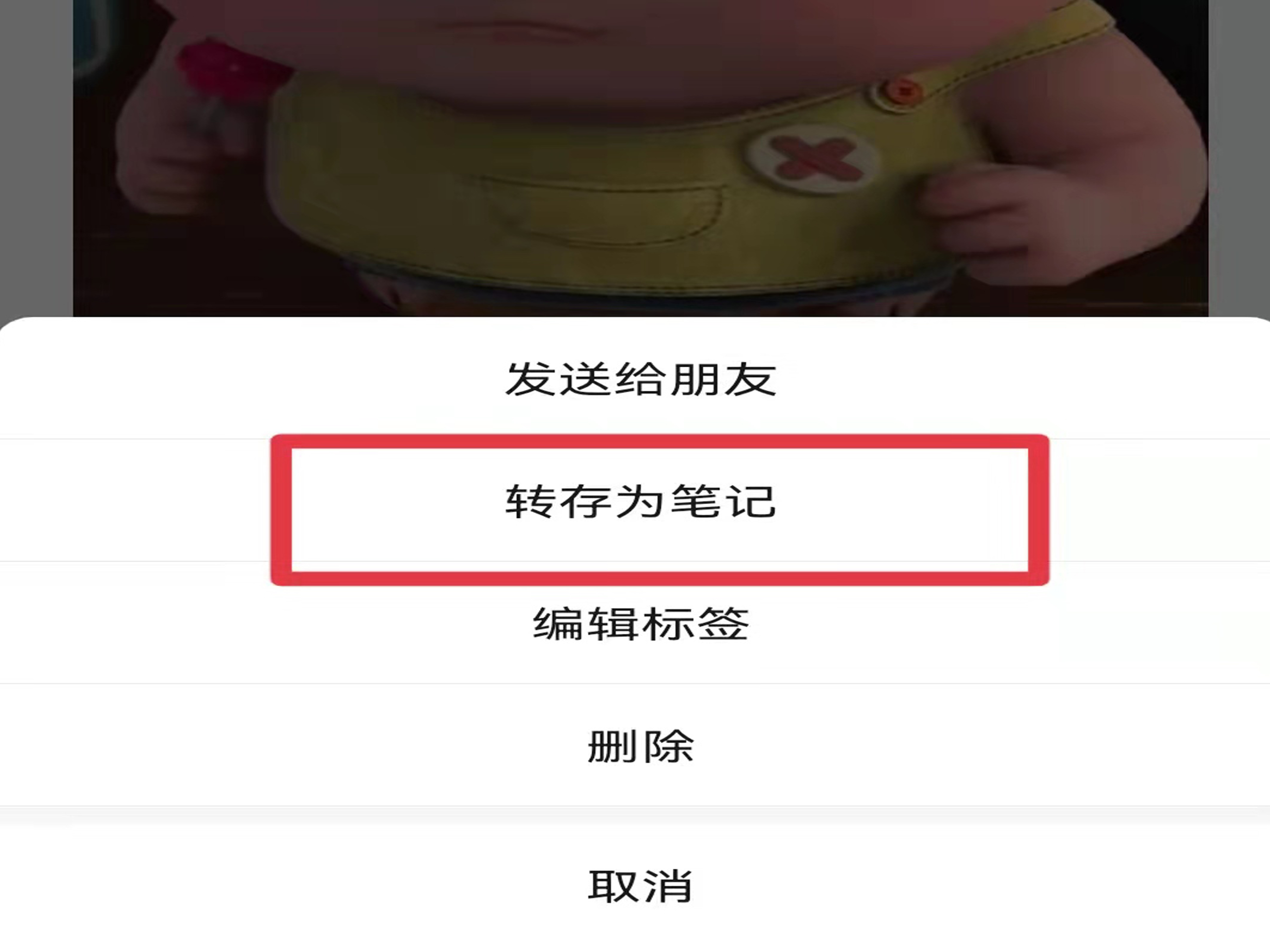 4、点击右上角的“三个点”图标,在弹出的选项中选择“转存为笔记”。