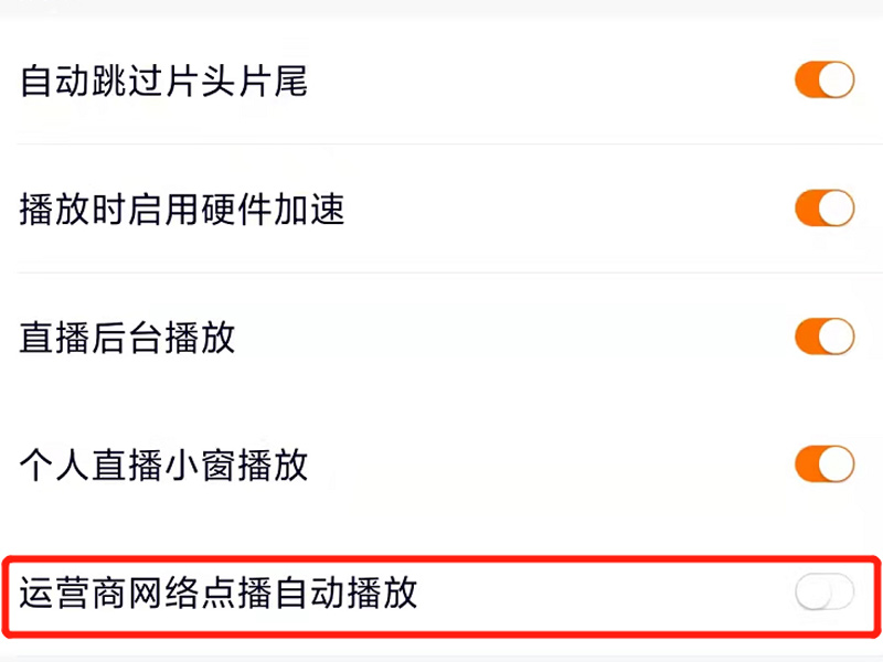 3、进入设置界面后,找到运营商网络点播自动播放并关闭即可。