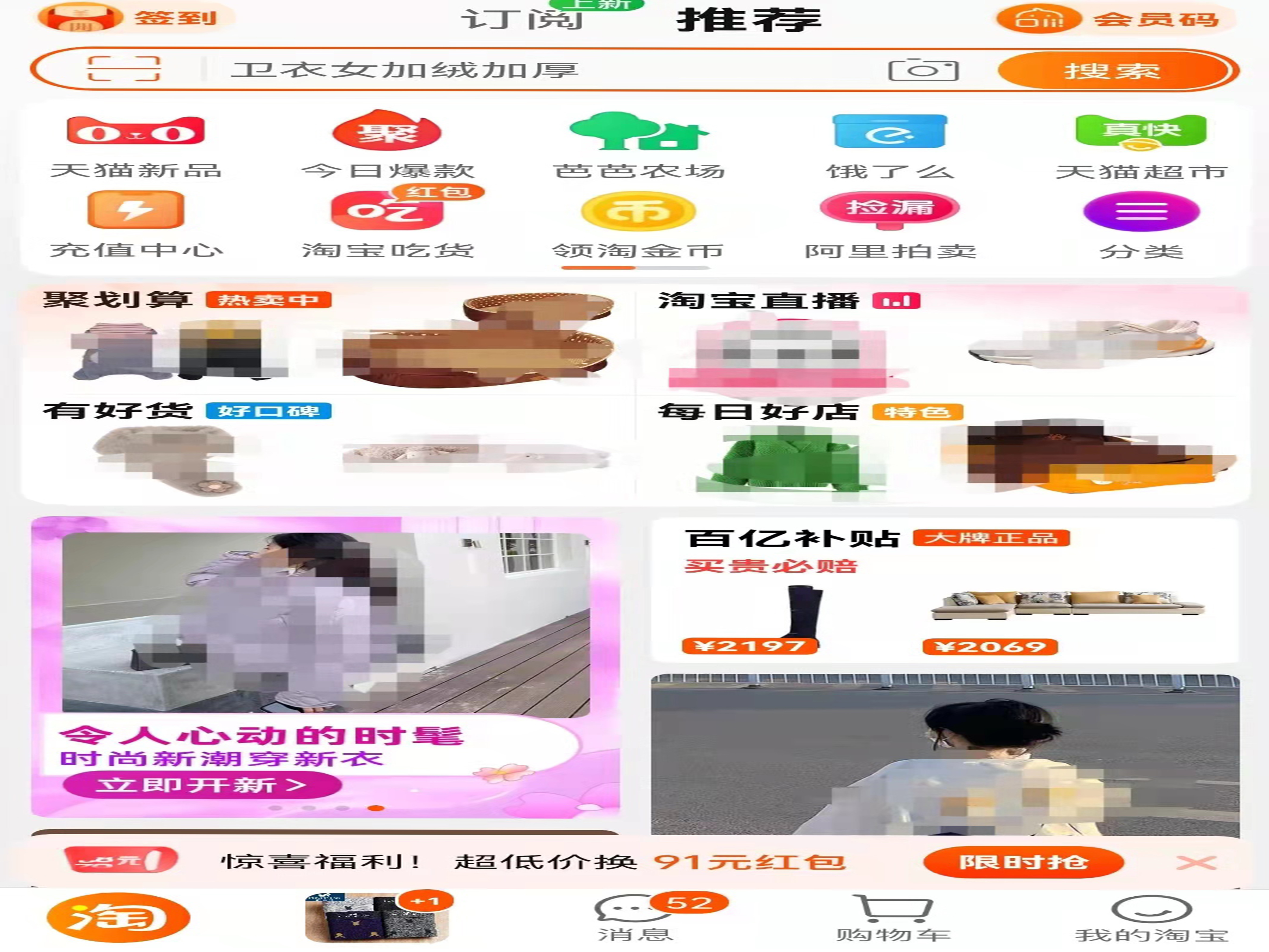 2、在淘宝主页面的众多频道中,选择“淘宝直播”。