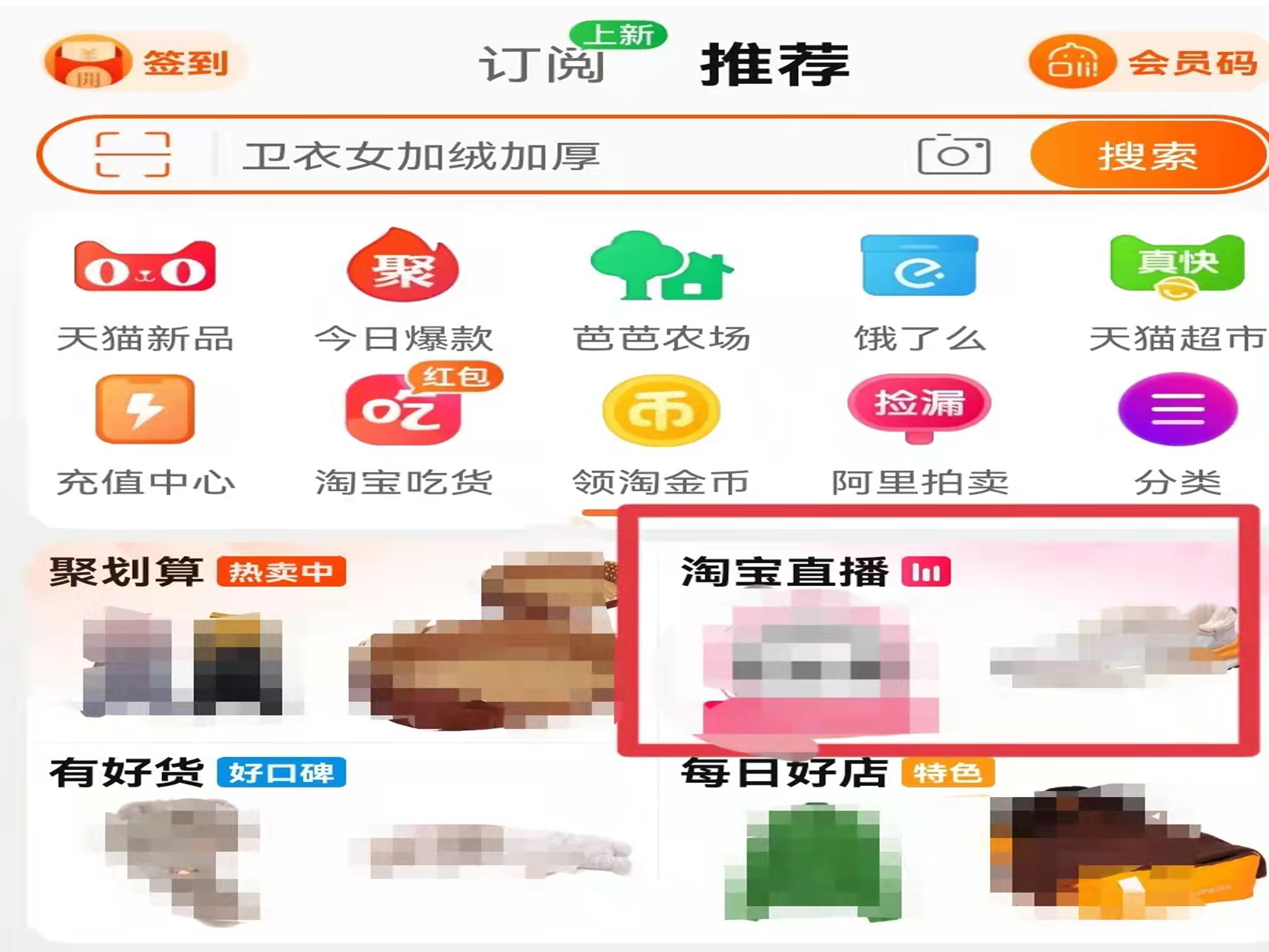 进入淘宝直播频道的操作方法如下:1、打开手机淘宝软件,进入淘宝主页面。2、在淘宝主页面的众多频道中,选择“淘宝直播”。3、进入淘宝直播间,即可观看相对应的商品直播。