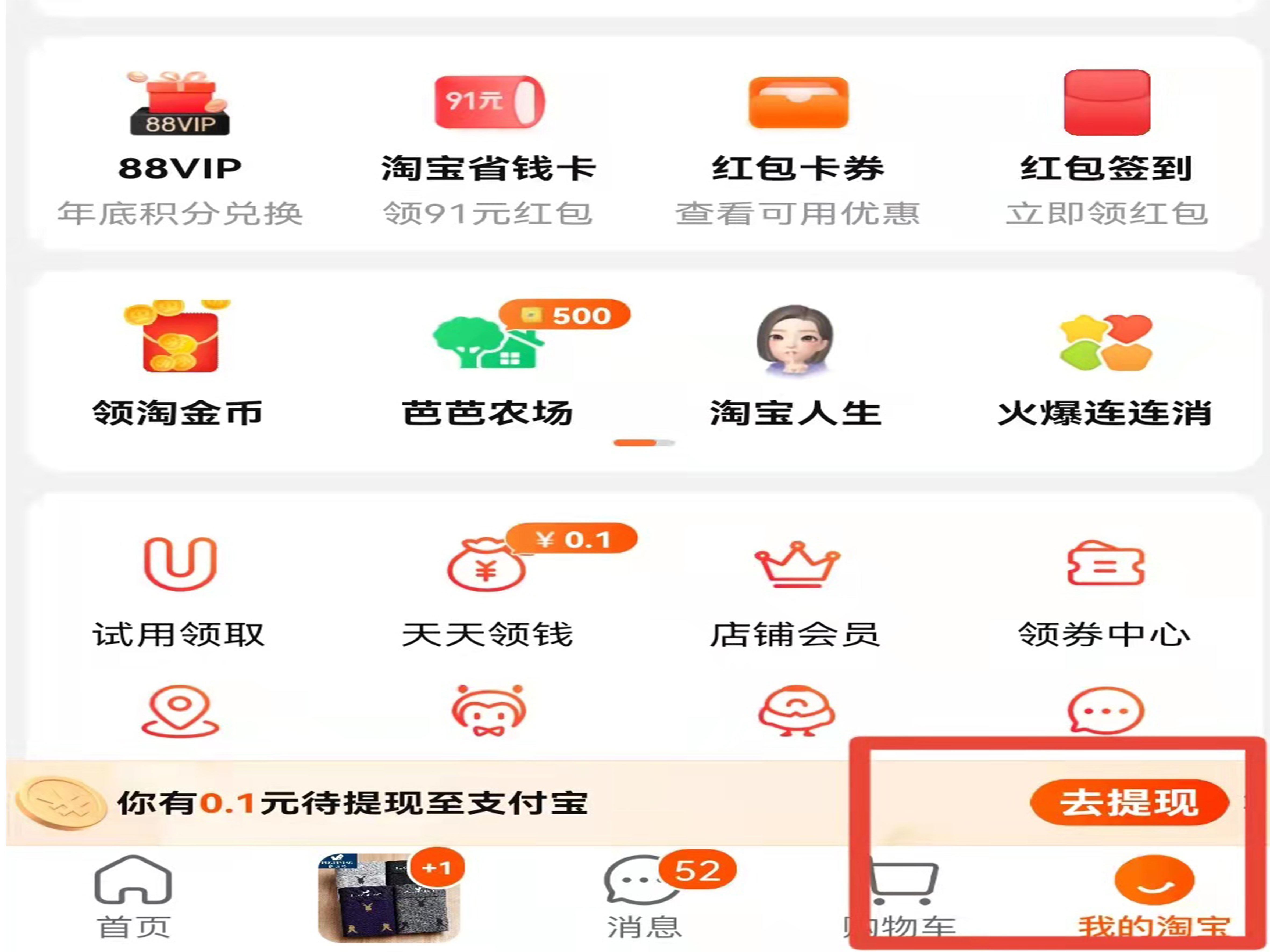 1、打开手机淘宝,切换至“我的淘宝”页面。