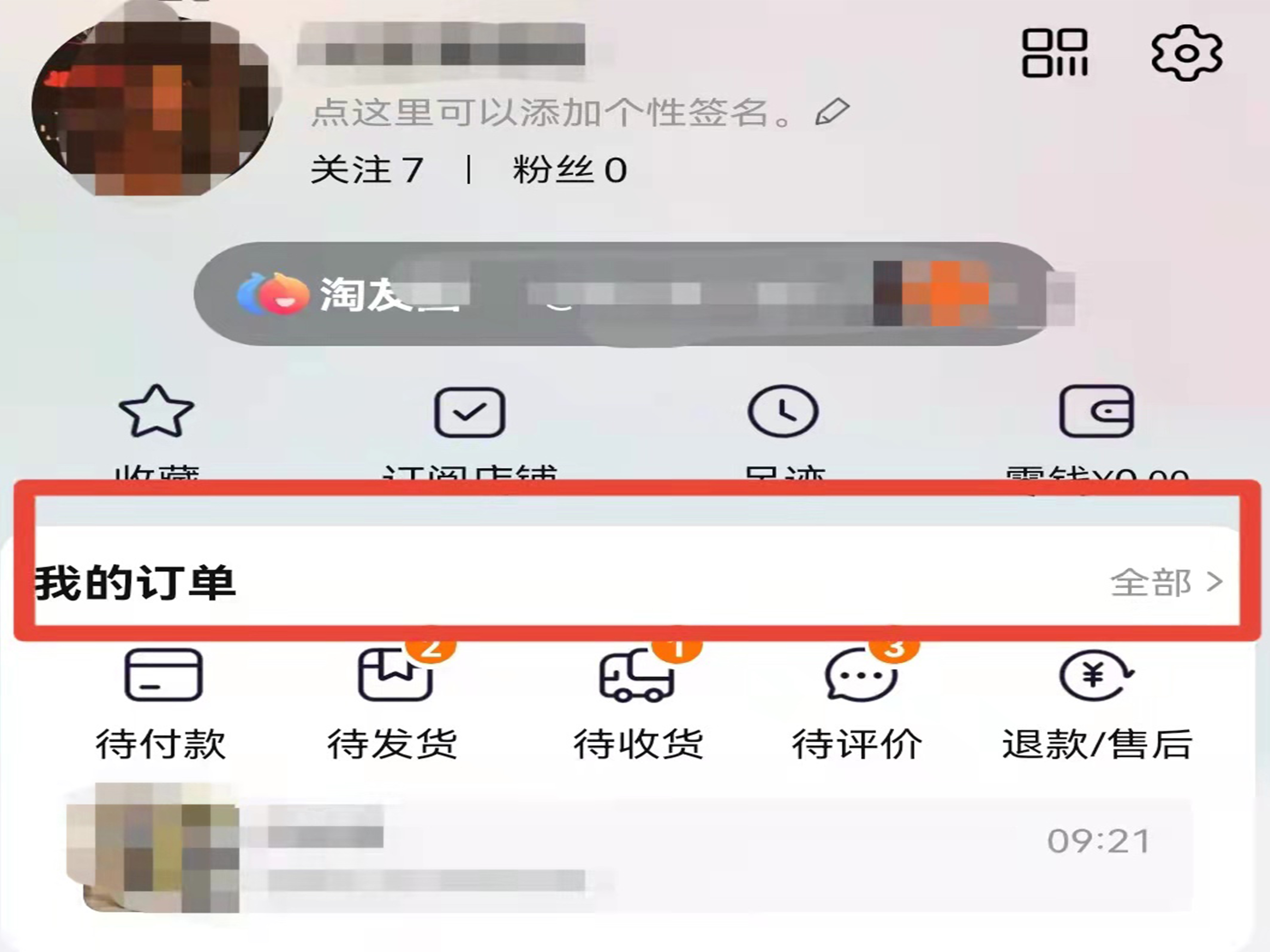 2、点击“我的订单”,在全部订单中选择需要进行追评的订单。