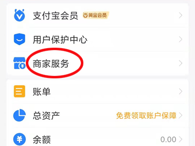 1、支付宝,切换到“我的”界面,点击“商家服务”。