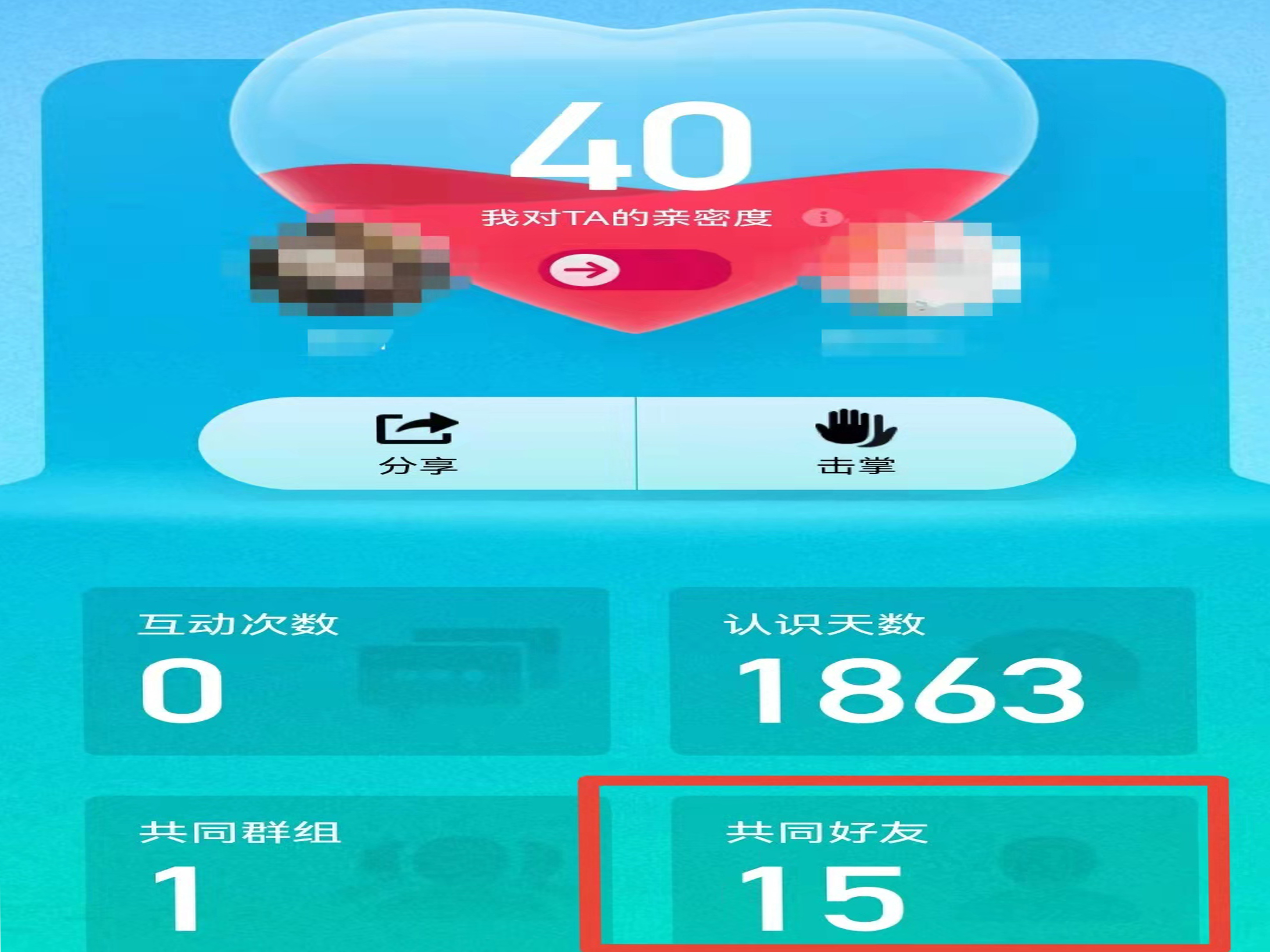 4、亲密度界面的右下角即显示“共同好友”次数。