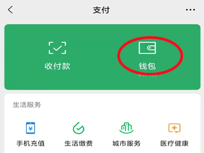 2、在支付页面中点击“钱包”,进入钱包页面。