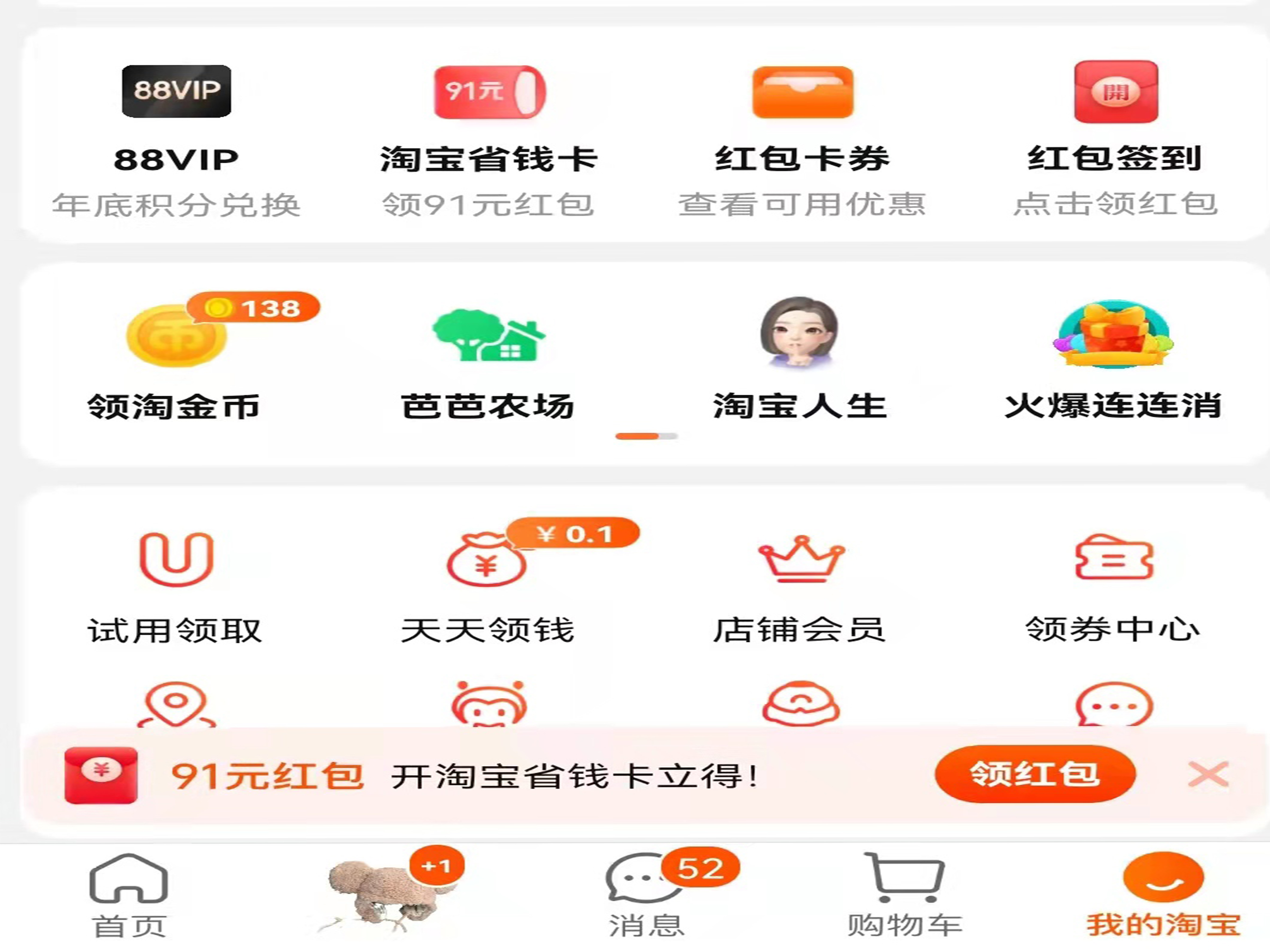 用手机查看淘宝号有几颗心的操作方法如下:1、打开手机淘宝软件,进入“我的淘宝”页面。2、点击右下方的“我的评价”按钮。3、在我的评价页面,即可看到淘宝号后面有几颗心、钻或冠。
