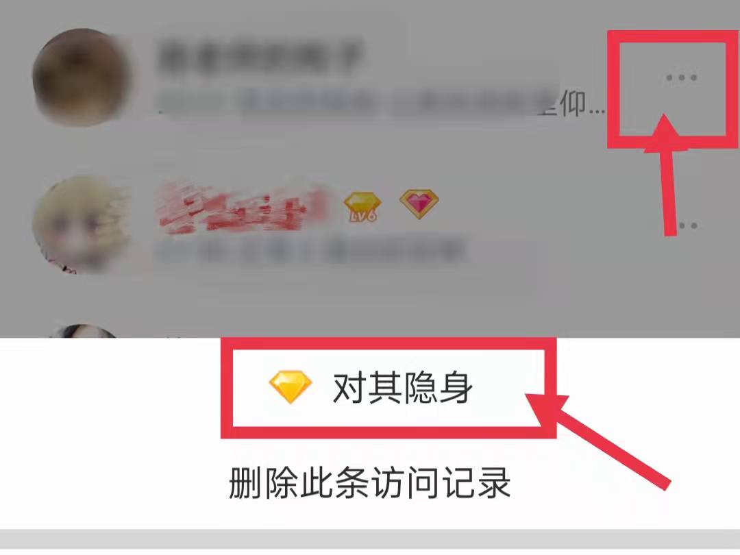 4、点击对方名字右边的三个点,在弹出来的提示中点击“对其隐身”即可。