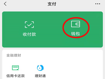 2、在支付页面中点击“钱包”,进入到钱包页面。