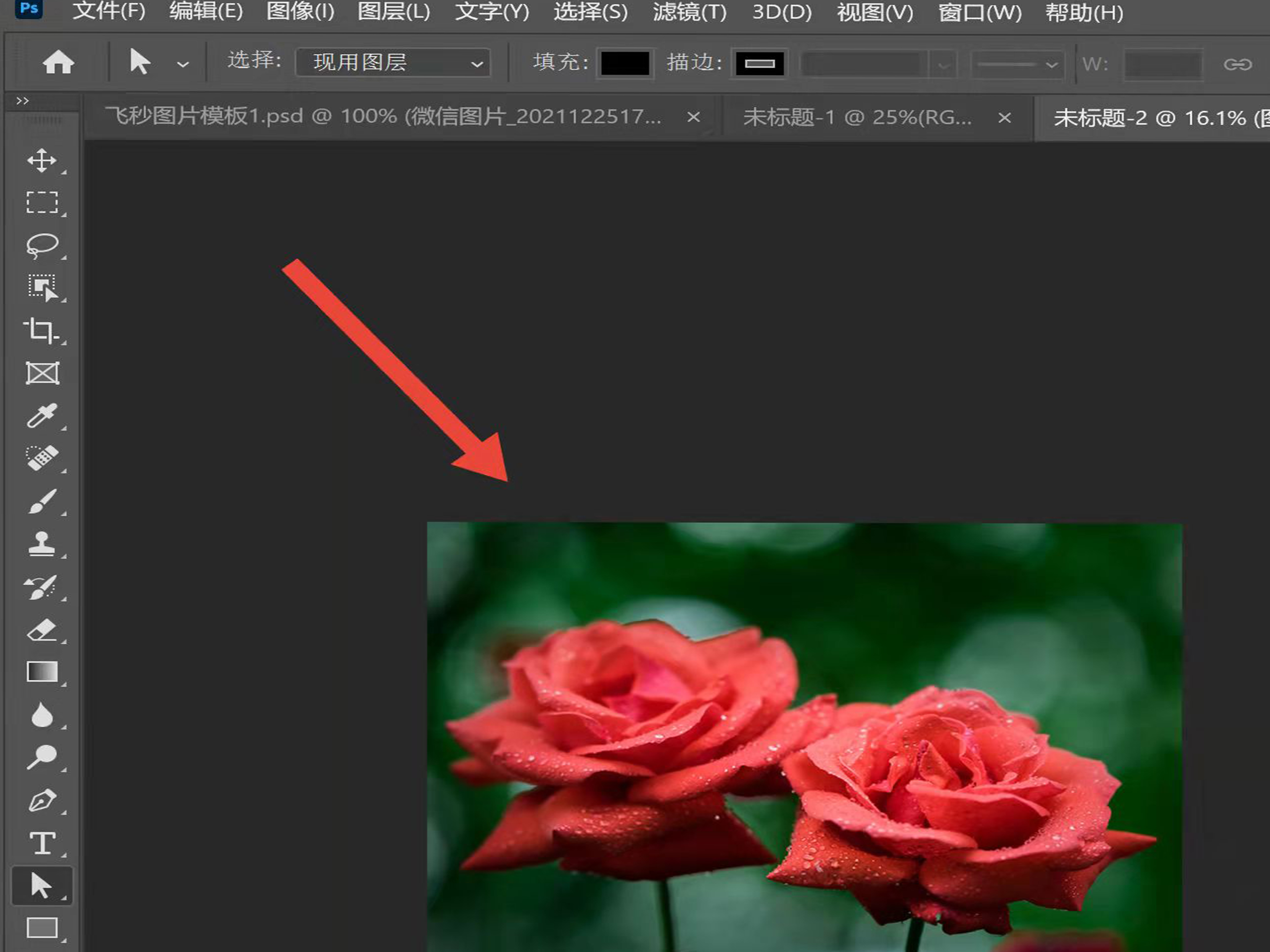 将素材用魔棒工具扣出来放在另一个素材中,按CTRL+T打开自由变换,调整好素材的大小和位置,将素材复制一层,把下方的素材作为影子,按CTRL+T打开