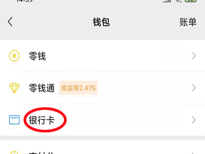 3、在钱包界面点击银行卡,进入银行卡界面。