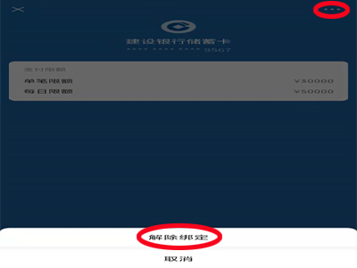 5、点击右上角的三个点,再点击“解除绑定”,输入密码即可成功解绑银行卡。