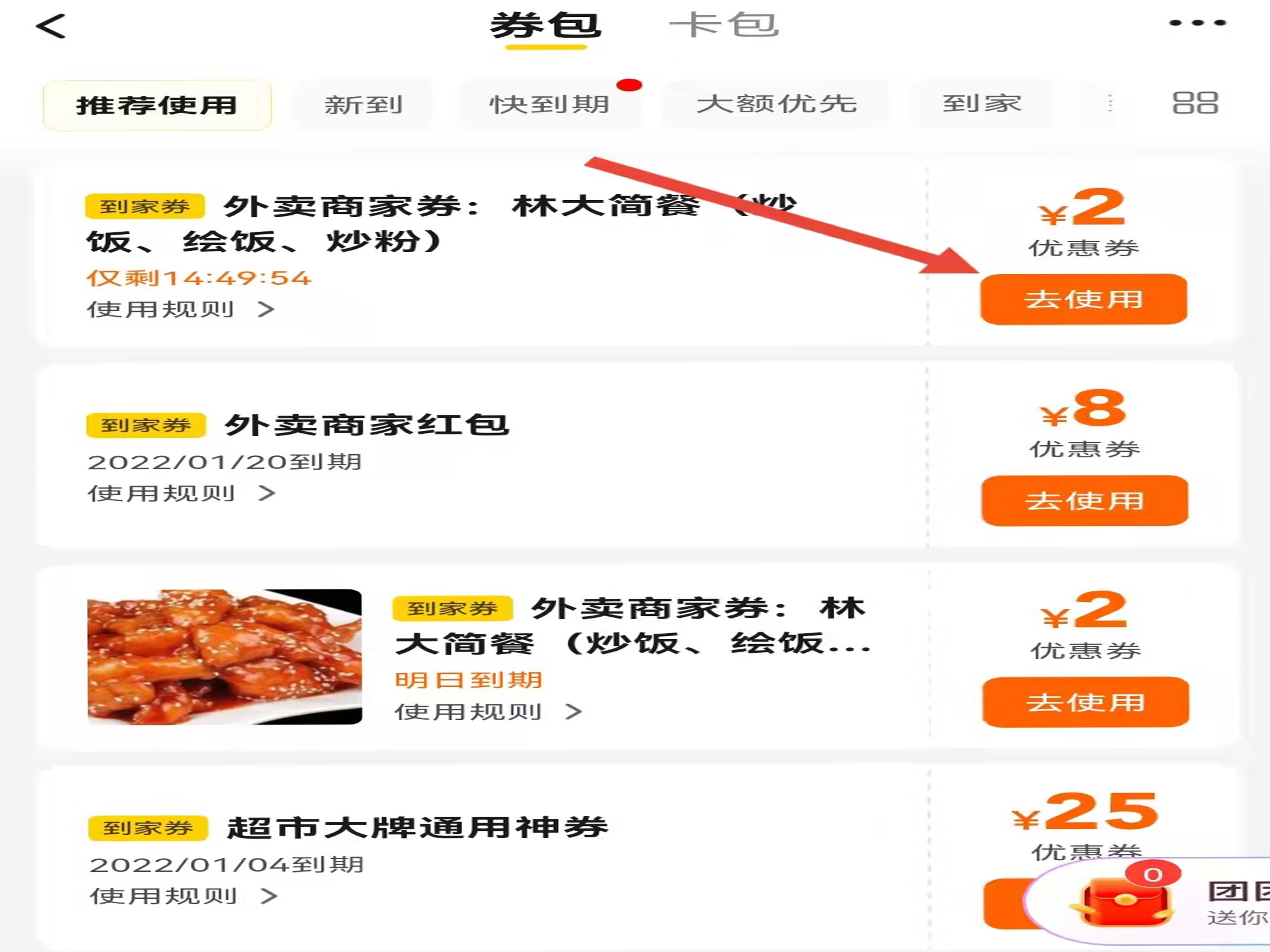 4、选中消费券,点击右侧的“去使用”,即可页面跳转到消费页面。