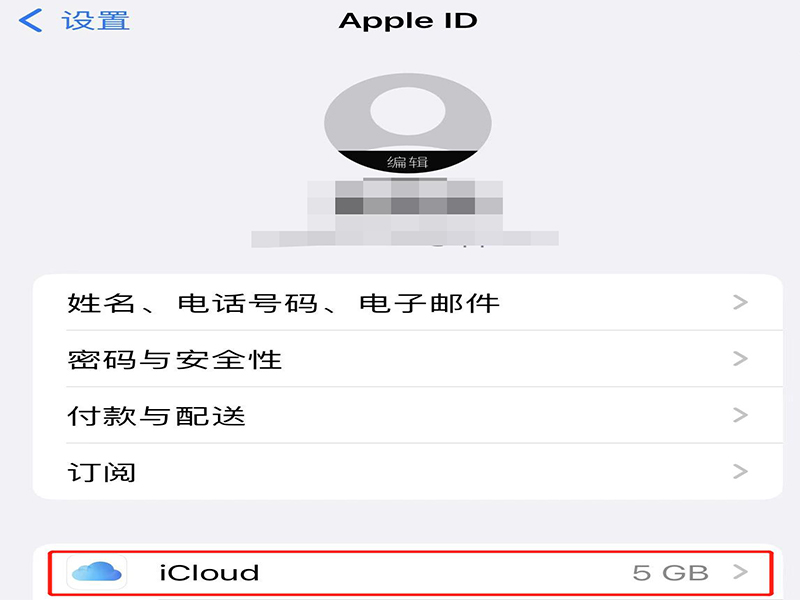 2、点击“icloud”,进入icloud空间设置页面。