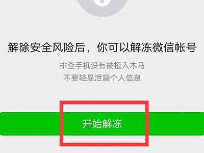 4、点击“开始解冻”,填写完整的相关信息即可完成解封。