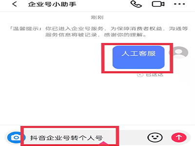 2、发送“人工客服”和“抖音企业号转个人号”。