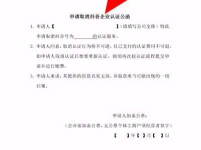 4、填写、盖章、扫描发送申请取消抖音企业认证公函到企业号小助手。