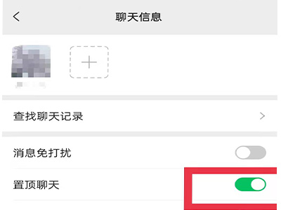 3、在好友的“聊天信息”页面打开“置顶聊天”按钮。