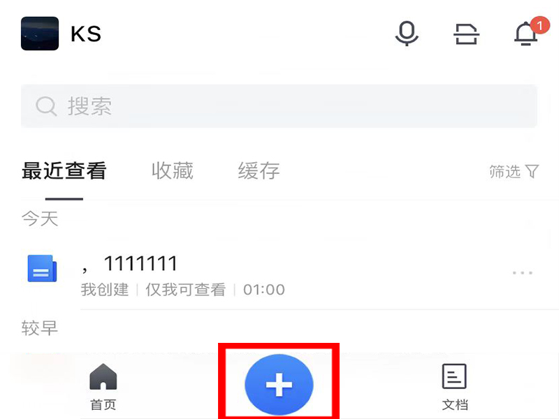 1、打开腾讯文档app,点击界面下方的“+”号。