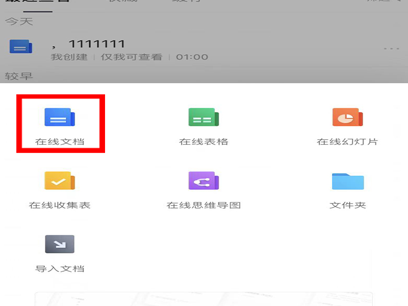 2、在弹出来的菜单栏中点击“在线文档”。