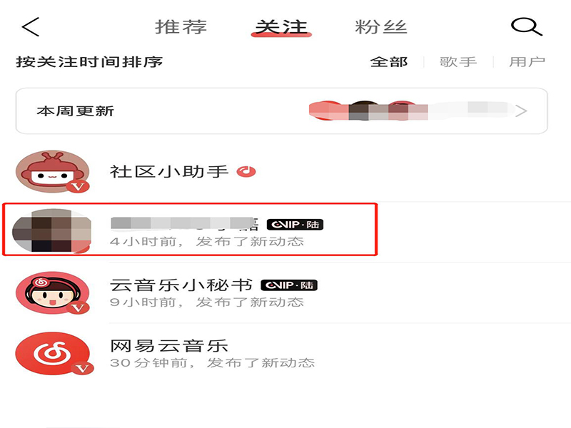 1、打开网易云音乐app,点击“关注”,进入关注页面。