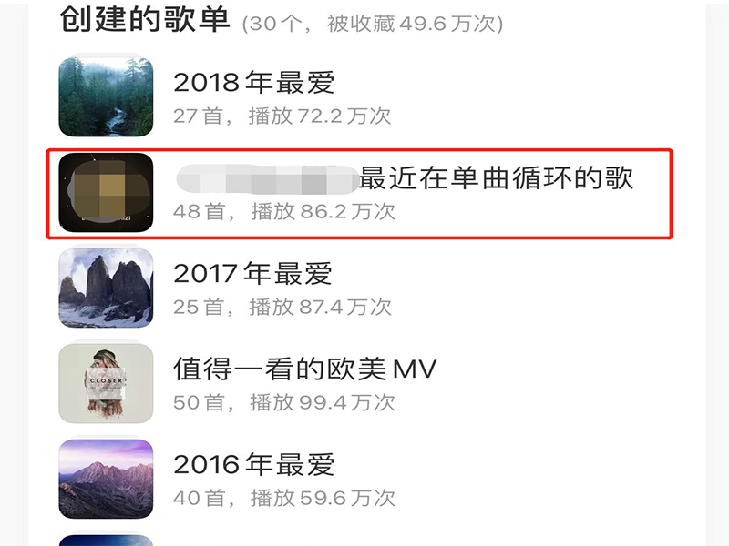 4、在好友的个人主页上,选择任意的歌单进入即可。