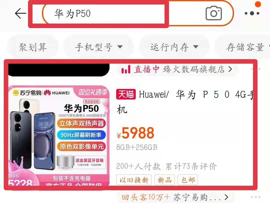 1、打开淘宝APP,搜索一款自己喜欢的手机,点击进入商品界面。