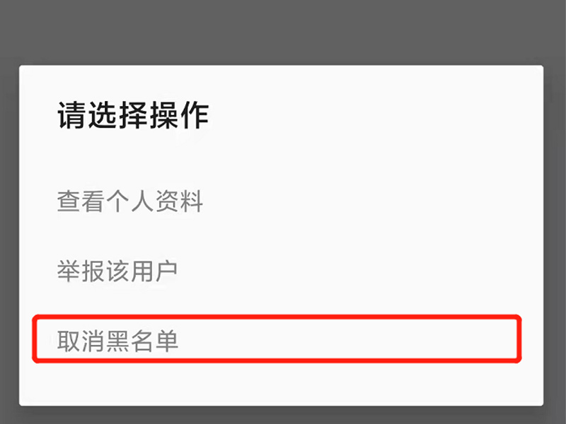 5、进入黑名单后,选择需要恢复的用户再长按该用户,再点击取消黑名单即可。