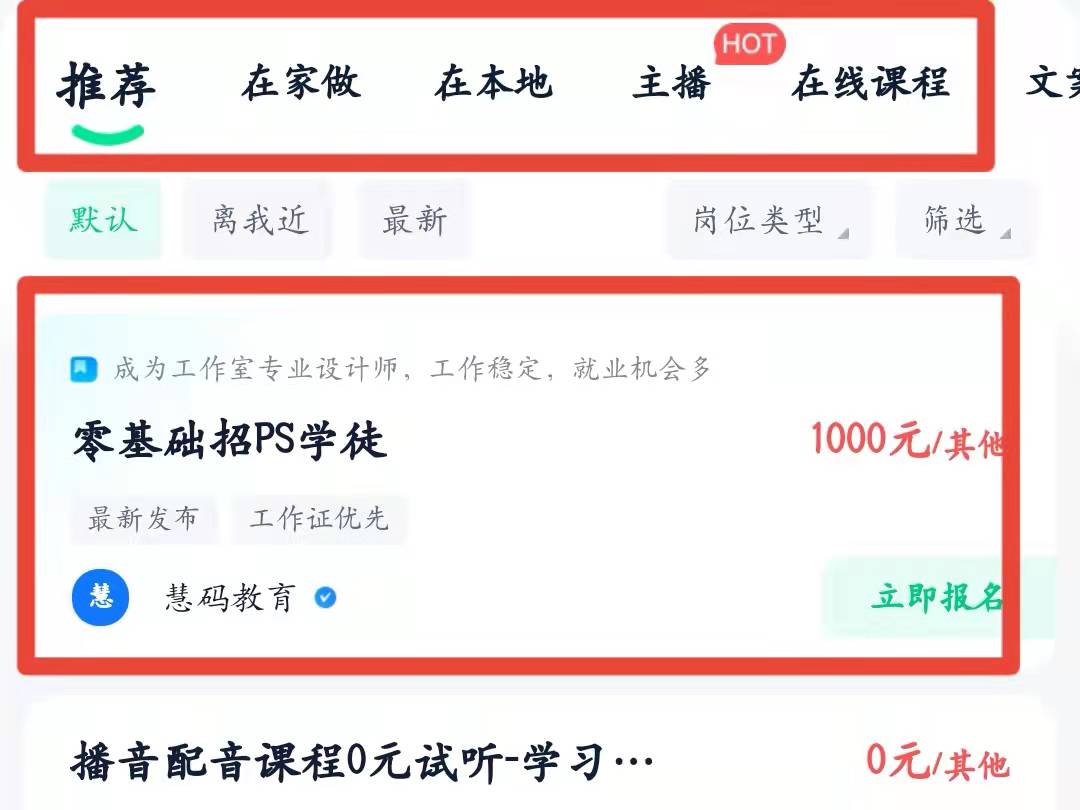 2、在小程序界面选择想要做的兼职,点击进入兼职界面。