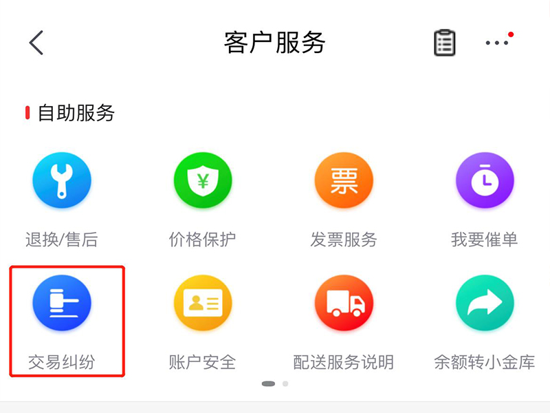 3、在客户服务专区,点击“交易纠纷”,进入交易纠纷申请页面。