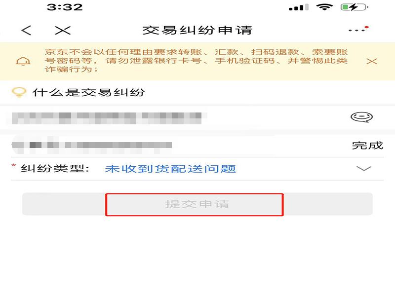 5、在纠纷类型上,选择未收到货配送问题,并点击“提交申请”即可。