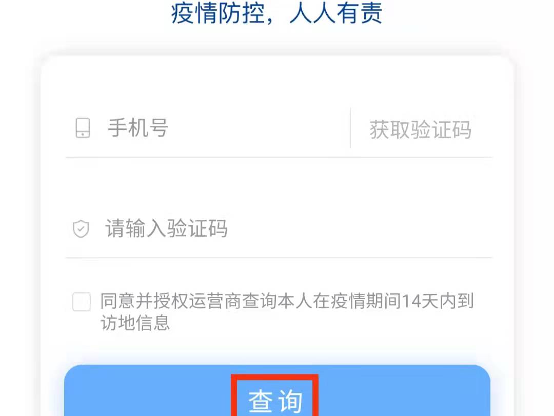 2、进入通信大数据行程卡页面,填写手机号和验证码进行“查询”。