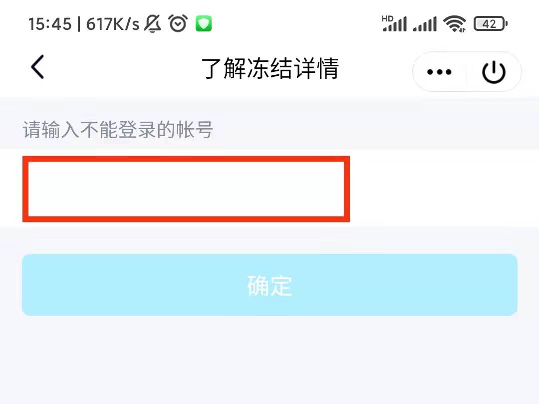 3、进入“了解冻结详情”页面,输入不能登录的账号了解详情,即可完成账号解封。