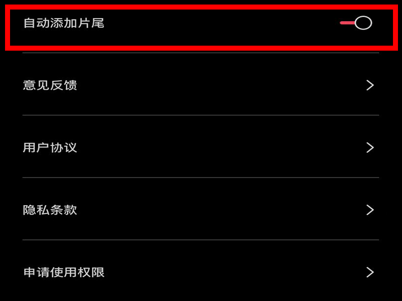 2、在弹出来的“设置”界面中,点击“自动添加片尾”右边的符号。